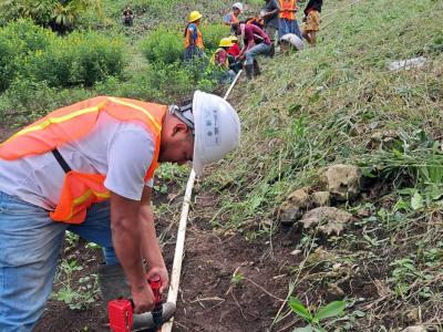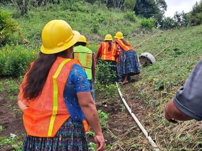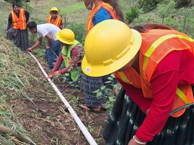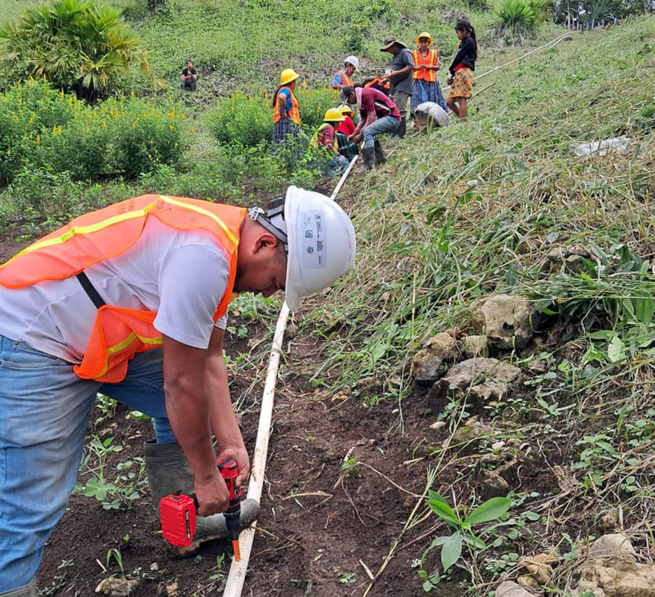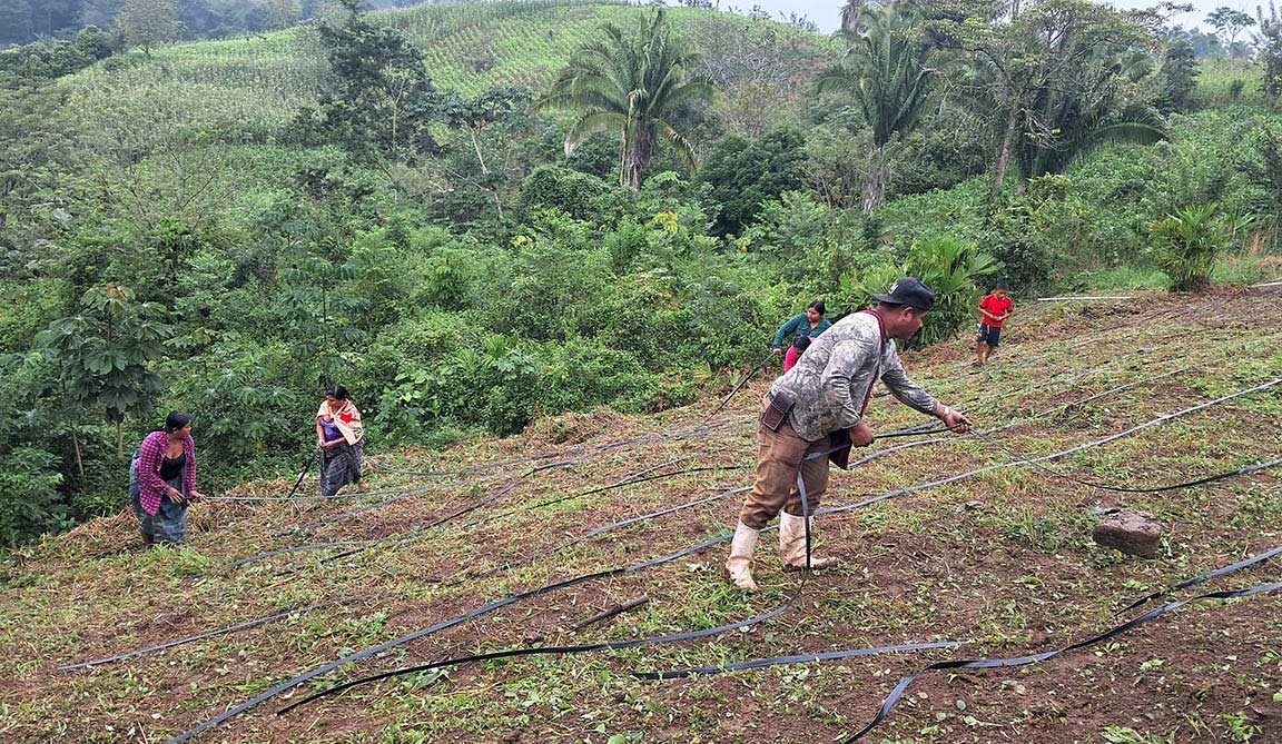 En seguimiento al proyecto de captación de agua iniciado en diciembre, productores del caserío Agua Negra, en San Luis, Petén, avanzaron en la implementación de sistemas de microriego por goteo, con la instalación de mangueras que permitirán poner en funcionamiento el sistema de riego para huertos familiares.