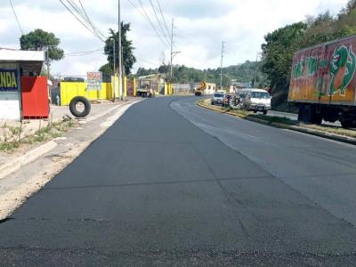La obra reporta un avance físico de 79 por ciento, con el cambio de asfalto viejo, colocación de mezcla asfáltica y la construcción de cunetas, entre otros trabajos efectuados por la Dirección General de Caminos del Ministerio de Comunicaciones, Infraestructura y Vivienda, -CIV-.