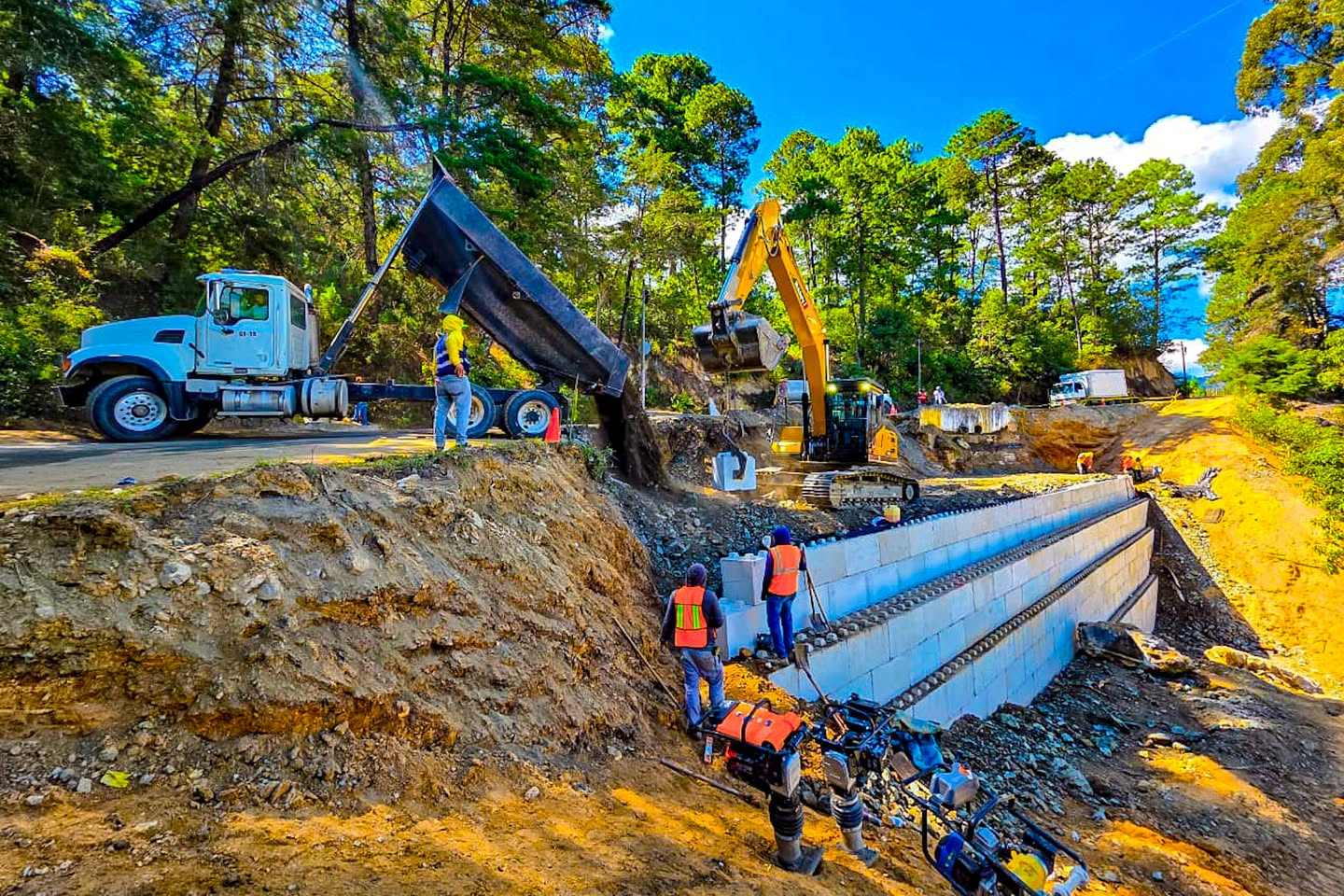 Las soluciones reales siguen llegando a las comunidades. En el kilómetro 162 de la ruta que conecta Llano Grande con Salamá, continúan los trabajos de armado y relleno del muro de suelo reforzado, una obra esencial para recuperar el costado afectado de esta vía estratégica en el departamento de Baja Verapaz.