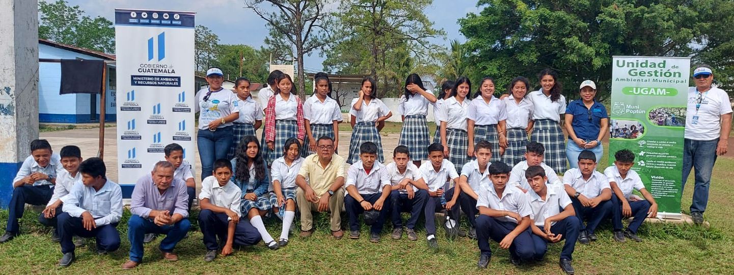 Con estudiantes del Instituto Nacional de Educación Básica de Telesecundaria de Poptún, Petén, la delegación departamental abordó los temas de manejo de desechos y residuos sólidos con el Reglamento 164-2021, así como la importancia de los bosques.