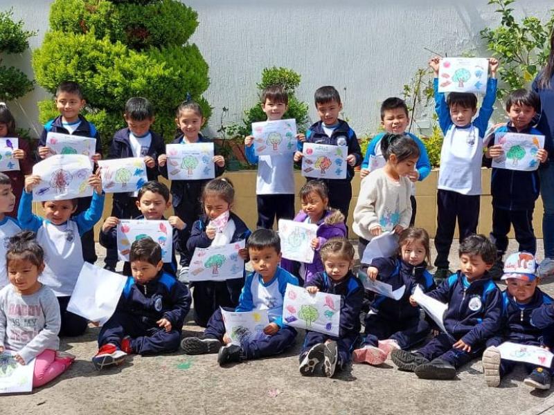 Alumnos del Colegio Planeta Kids de San Pedro Sacatepéquez, San Marcos, aprendieron los beneficios del bosque y la importancia del cuidado del ambiente durante un taller de la delegación del MARN.