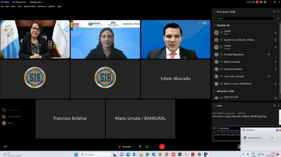 La ministra de Economía, Luz Pérez, participó este miércoles en la inauguración de la quinta edición de las Jornadas de Educación Financiera, evento virtual organizado conjuntamente entre el Banco de Guatemala (BANGUAT), la Superintendencia de Bancos (SIB) y el Ministerio de Economía (MINECO), en el marco de la Estrategia Nacional de Inclusión Financiera (ENIF).