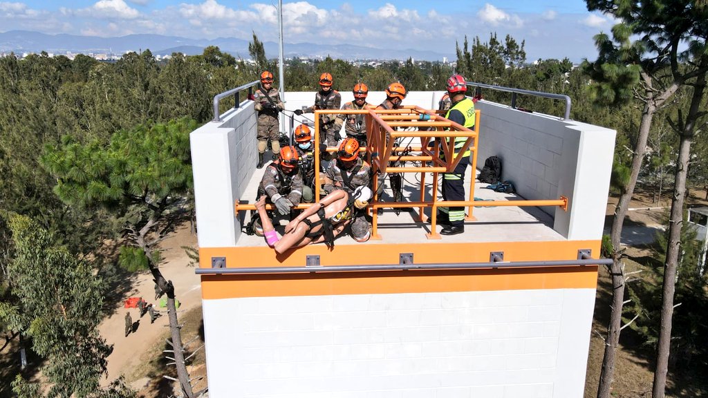 El Batallón Humanitario y de Rescate del Ejército de Guatemala, practicó este jueves 24 de febrero, una serie de procedimientos para efectuar rescate en alturas, a través de la torre de entrenamiento construida para dicho fin, ubicada en el interior de la Primera Brigada de Infantería Mariscal Zavala, en la zona 17 capitalina.