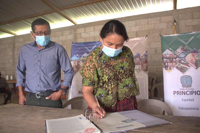 Beneficiarios de las comunidades La Pimienta, Laguna Secocbol y Nimlaja del municipio San Luis, Petén; firmaron Escritura Pública; logrando facilitar el acceso a la tierra en propiedad a campesinos y campesinas en forma individual y otorgar a las familias certeza jurídica de la tierra que posesionan.