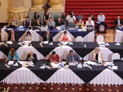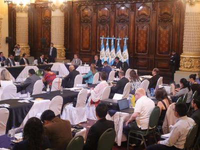 Guatemala, 10 de mayo de 2024. El Presidente Bernardo Arévalo dirigió la segunda reunión ordinaria del Consejo Nacional de Desarrollo Urbano y Rural (Conadur), realizada en el salón Banderas del Palacio Nacional de la Cultura.