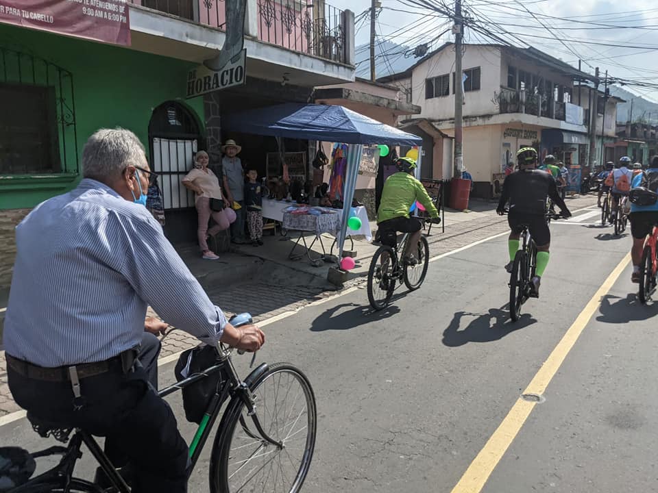 Grupos de ciclistas salieron desde las 8.30am de Jocotenango acompañados de familias para adentrarse en las calles de vos municipios.