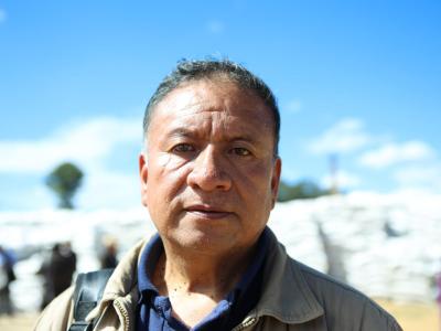 Don Marcelino Palacios Guacas, quien se dedica al cultivo de maíz, papa y zanahoria, entre otras variedades de hortalizas, es beneficiario del Bono Campesino. En dicha aldea, del departamento de Sololá, agradeció la entrega de fertilizantes que le ayudarán con la producción de sus cultivos.