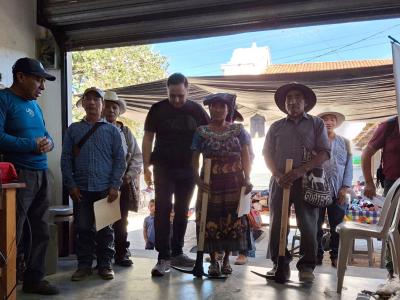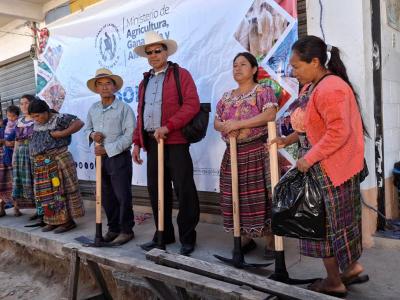 • Guatemala, San Juan Sacatepéquez: semillas de maíz, cinco variedades de semillas de hortalizas, aperos de labranza y bombas de aspersión.