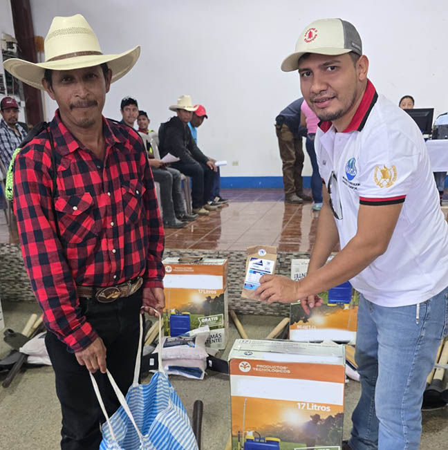 En Camotán, Chiquimula, los agricultores familiares reciben abono orgánico y bombas de aspersión, con lo cual enriquecen el suelo de forma directa y pueden distribuir de manera uniforme, los fertilizantes líquidos, plaguicidas o fungicidas en los cultivos.