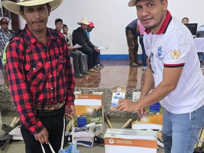 En San Antonio La Paz, El Progreso, las familias agricultoras reciben un kit completo que incluye bombas de aspersión, herramientas agrícolas, semillas de hortalizas y maíz, fomentando la diversificación de cultivos y el autoconsumo.