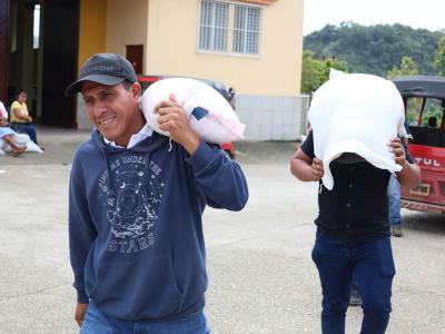 La distribución del Bono Campesino continúa y ahora llegó al municipio de San Luis, ubicado en el departamento de Petén, beneficiando a las y los agricultores con la entrega de fertilizante, que corresponde a la modalidad excedentario.