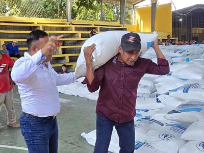 El apoyo a la producción agrícola continúa con la entrega del Bono Campesino, en la modalidad de excedentarios, en cuatro departamentos del país, en donde se está entregando fertilizante.