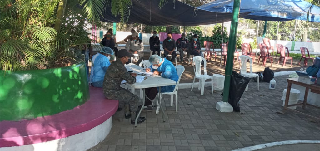 Este 23 de noviembre, la Brigada de Artillería de Campaña “Santa Bárbara”, con sede en el departamento de Baja Verapaz, continúo apoyando al área de salud en la aplicación de la vacuna contra el Coronavirus, COVID-19, con el fin de mitigar y contrarrestar los impactos de la pandemia en el país; acción que permitió aplicar más de 300 dosis en diferentes puntos del departamento: Instalaciones del Centro de Salud del municipio de San Jerónimo, Baja Verapaz; Centro de vacunación del Parque Infantil de Salamá y Aldea La Rinconada del municipio de San Jerónimo.