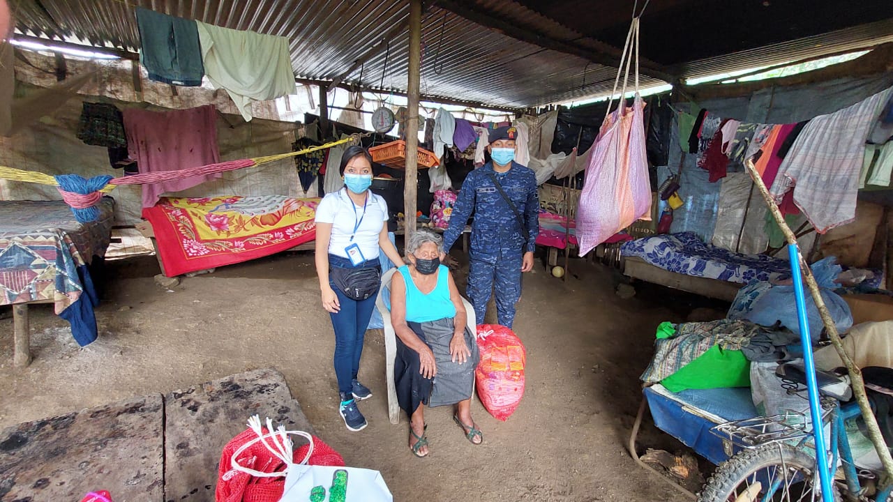 Soldados de la Brigada de Infantería de Marina, apoyaron este 23 de febrero, a la Secretaría de Obras Sociales de la Esposa del Presidente (SOSEP), en la entrega de víveres a adultos mayores que residen en el barrio El Centro del municipio de El Estor, Izabal.