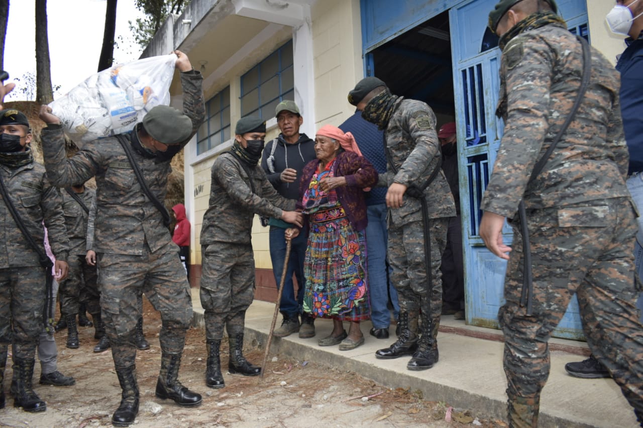 Soldados que integran la Brigada de Operaciones para Montaña, efectuaron este 15 de febrero, una jornada de entrega de víveres y medicamentos para familias de escasos recursos, que habitan en las aldeas Villa Real y Las Brisas del municipio de Tajumulco, SanMarcos.