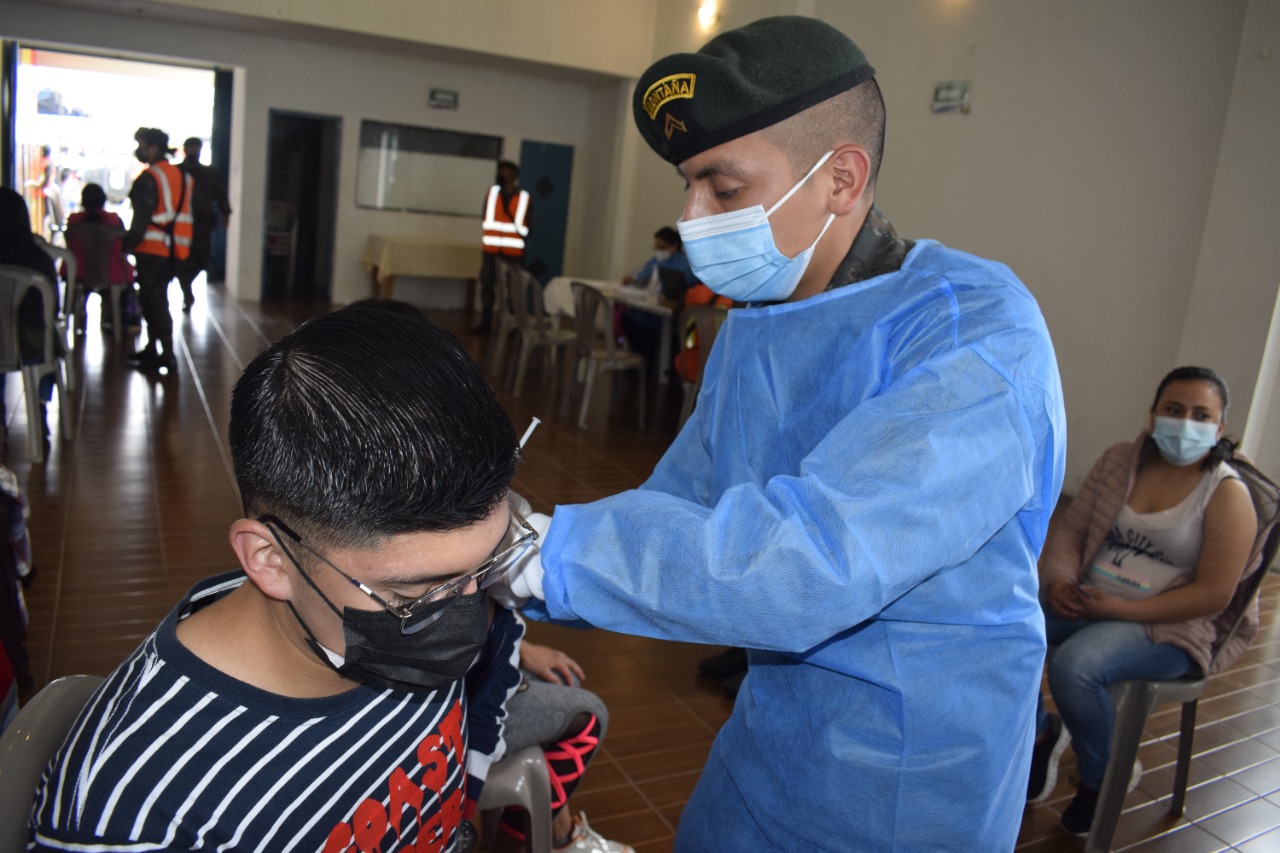 Los soldados de la Brigada coadyuvan en la organización del proceso de inmunización, enfermeros militares que administran la vacuna; además de complementar estas actividades con operaciones de seguridad perimetral, acciones que en su conjunto fortalecen la planificación estipulada en el Plan de Vacunación en sus distintas fases, para combatir la pandemia.