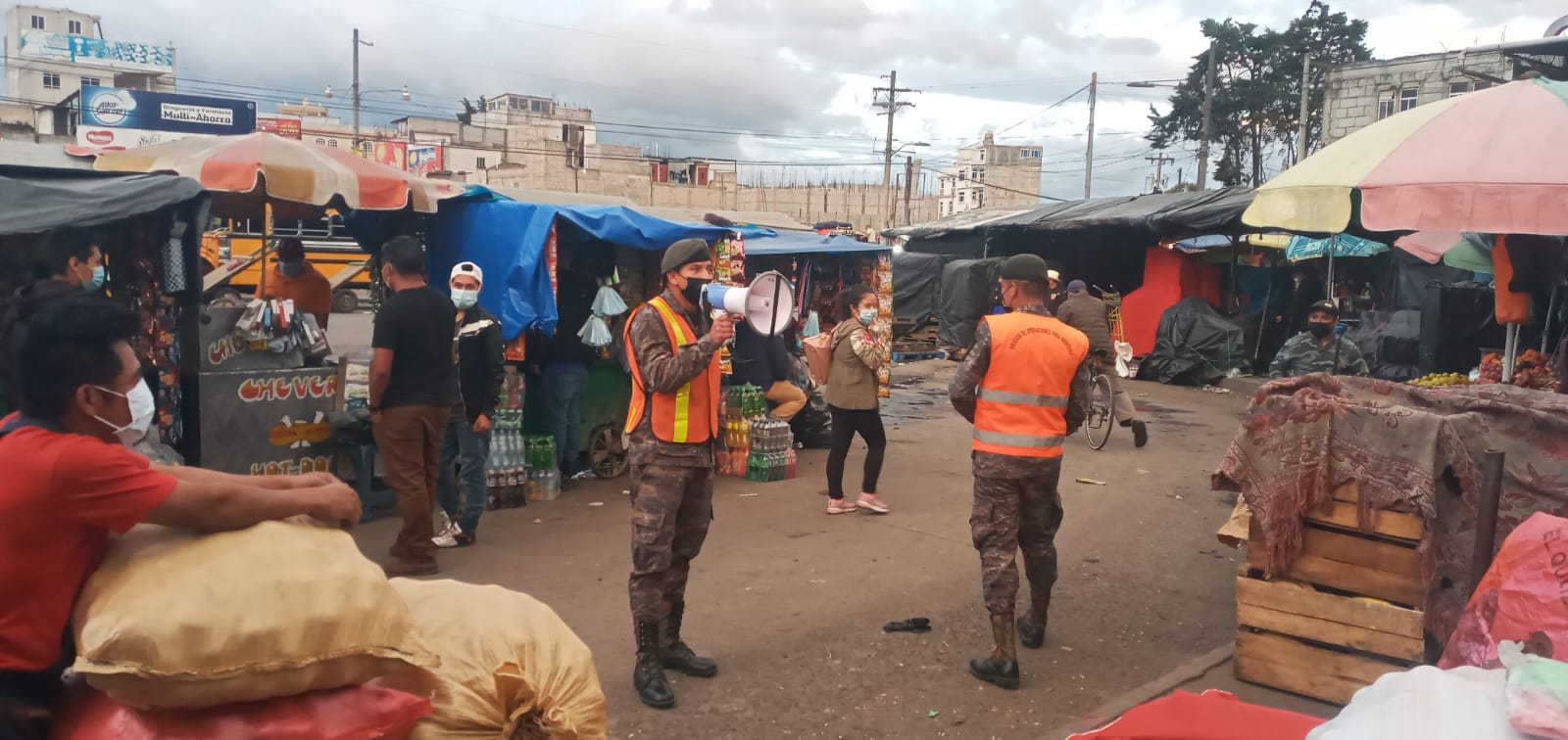 Como parte de las acciones para frenar el avance de la pandemia de Coronavirus, COVID-19, la Brigada de Operaciones para Montaña del Ejército de Guatemala, recorrió calles y avenidas de la cabecera de Quetzaltenango, invitando a la población a vacunarse contra la enfermedad, así como continuar observando las medidas de prevención para evitar contagios.