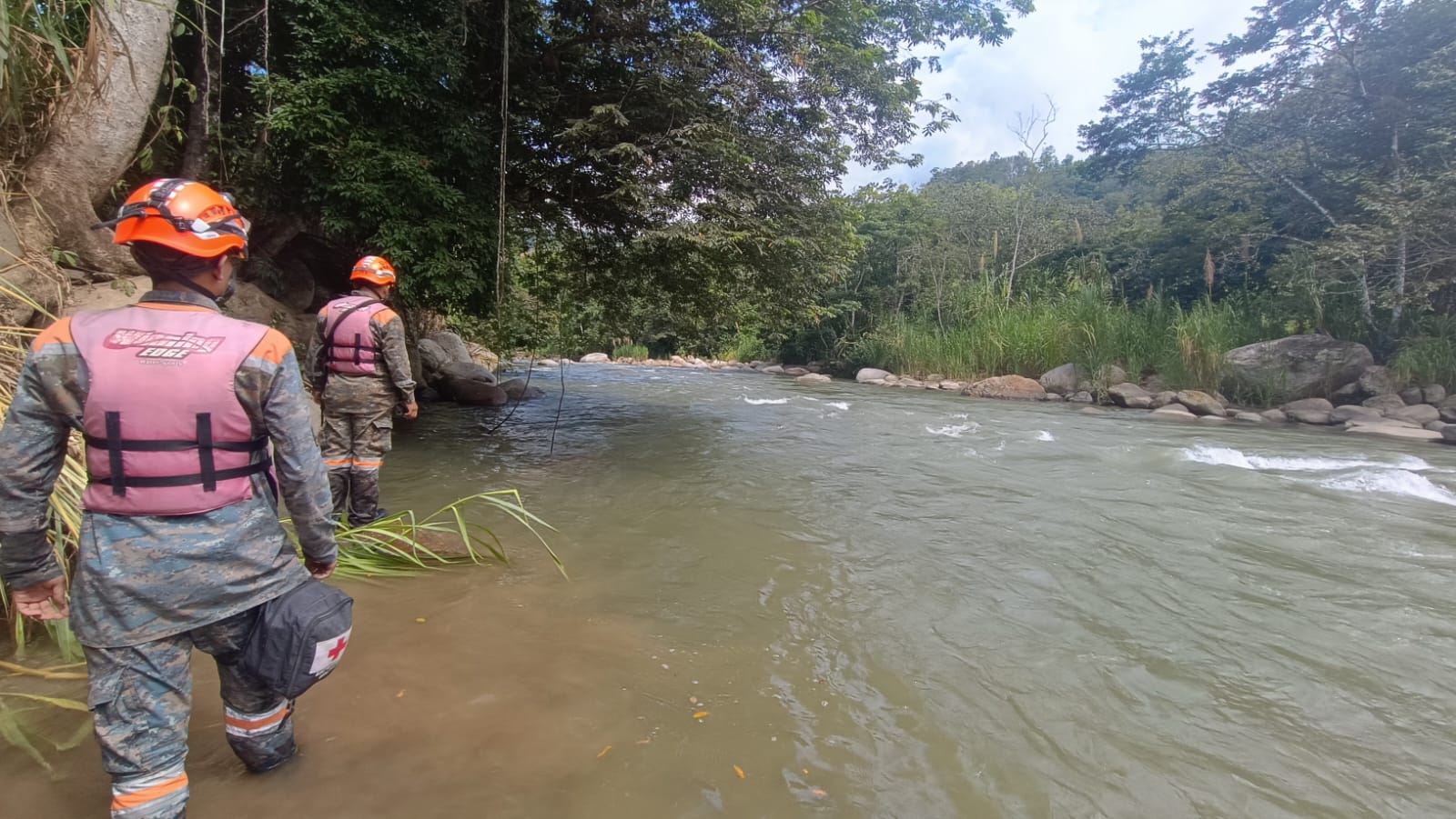 Los rescatistas militares en coordinación con representantes de la Coordinadora Nacional para la Reducción de Desastres (CONRED), elementos de la Policía Nacional Civil (PNC) y comunitarios, retomaron este día con las operaciones de búsqueda a orillas del río.