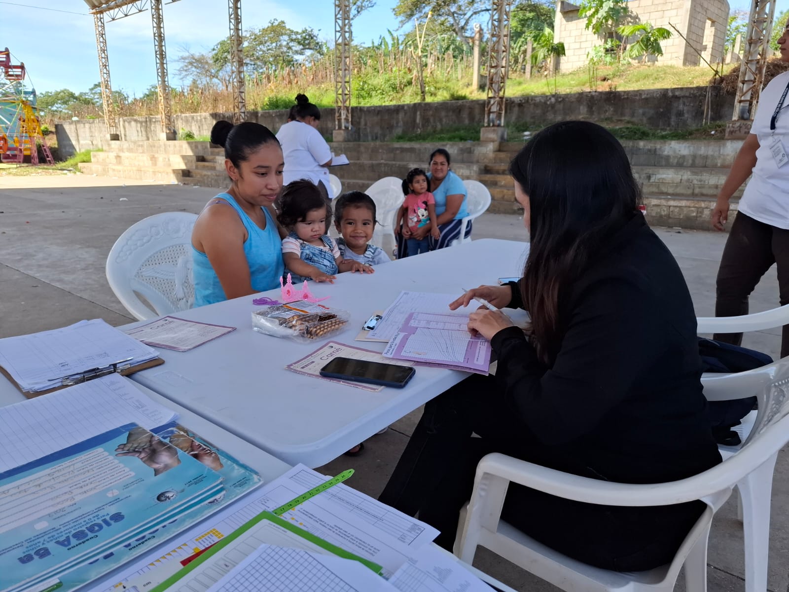 El acercamiento con la comunidad permitió atender a niñas y niños menores de 5 años con monitoreo de peso y talla, desparasitación y vacunación según esquema a aplicar a los menores.