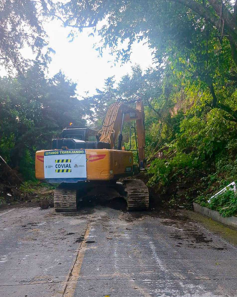 Equipos del Ministerio de Comunicaciones, Infraestructura y Vivienda (CIV), a través de la Unidad Ejecutora de Conservación Vial (COVIAL) y la Dirección General de Caminos, continúan atendiendo los derrumbes provocados por los recientes sismos, con el objetivo de restablecer la conectividad.