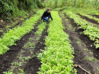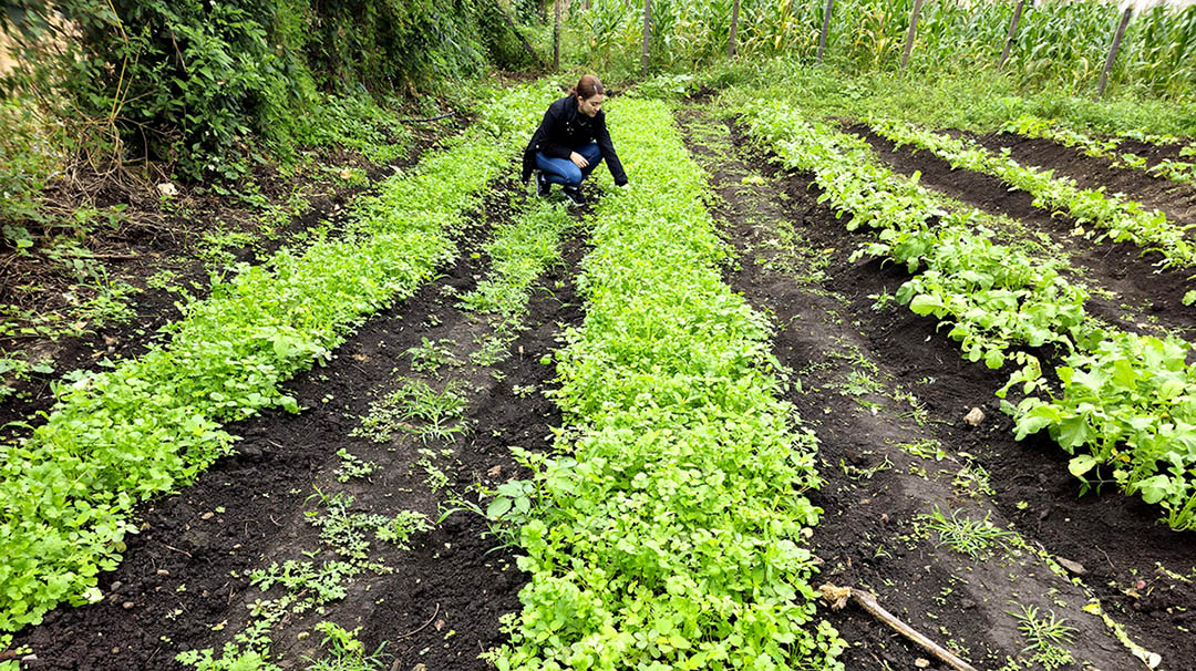 Este huerto, que forma parte del Centro de Aprendizaje para el Desarrollo Rural (CADER), cultiva variedades como rábano, cilantro, pepino, ayote y zucchini, fundamentales para la dieta de los miembros de la comunidad.