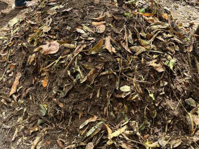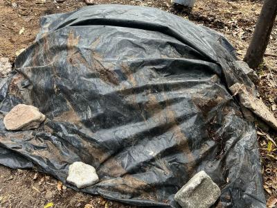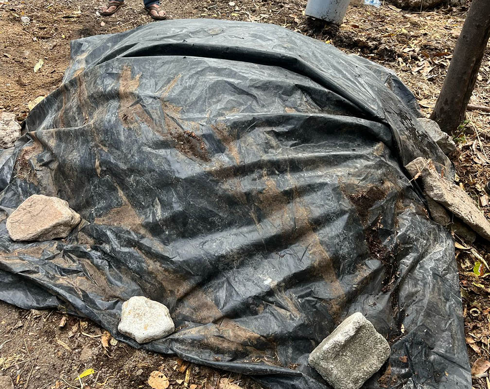 3. Mezcla y fermentación: se mezcla todo el material y se cubre con un nylon negro.