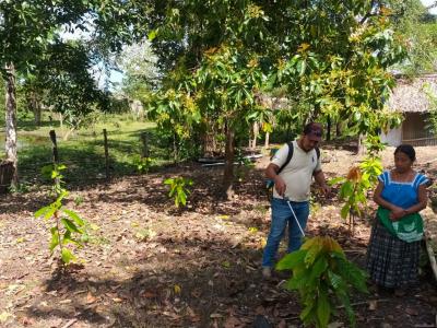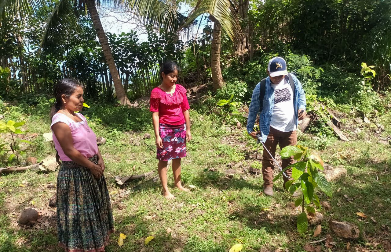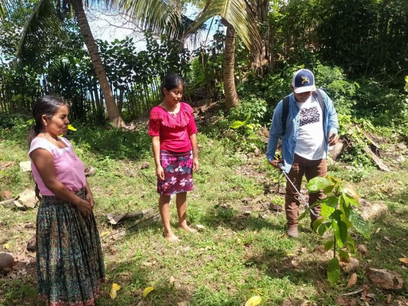 La comunidad de La Cebada, en el municipio de Melchor de Mencos y en la Zona de Adyacencia, recibió asistencia técnica en fertilización y control de plagas, así como de enfermedades en cultivos de cacao y otras especies establecidas en los huertos familiares.