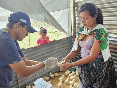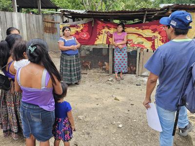 Con el objetivo de fortalecer las capacidades técnicas de quienes integran el Centro de Aprendizaje para el Desarrollo Rural (CADER) de la comunidad Monte Los Olivos, municipio de Dolores, Petén, se dio seguimiento a los procesos de capacitación en manejo, profilaxis y vacunación de aves de engorde.