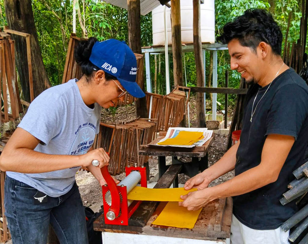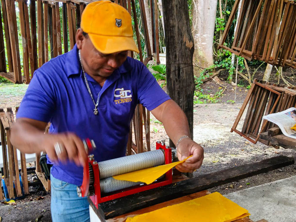 Con la asistencia técnica en el proceso de laminado y estampado de cera de abeja, a productores del caserío Kilómetro 12, ubicado en Carmelita, San Andrés, Petén, el Ministerio de Agricultura, Ganadería y Alimentación (MAGA) continúa con el apoyo a las y los pequeños productores apícolas.