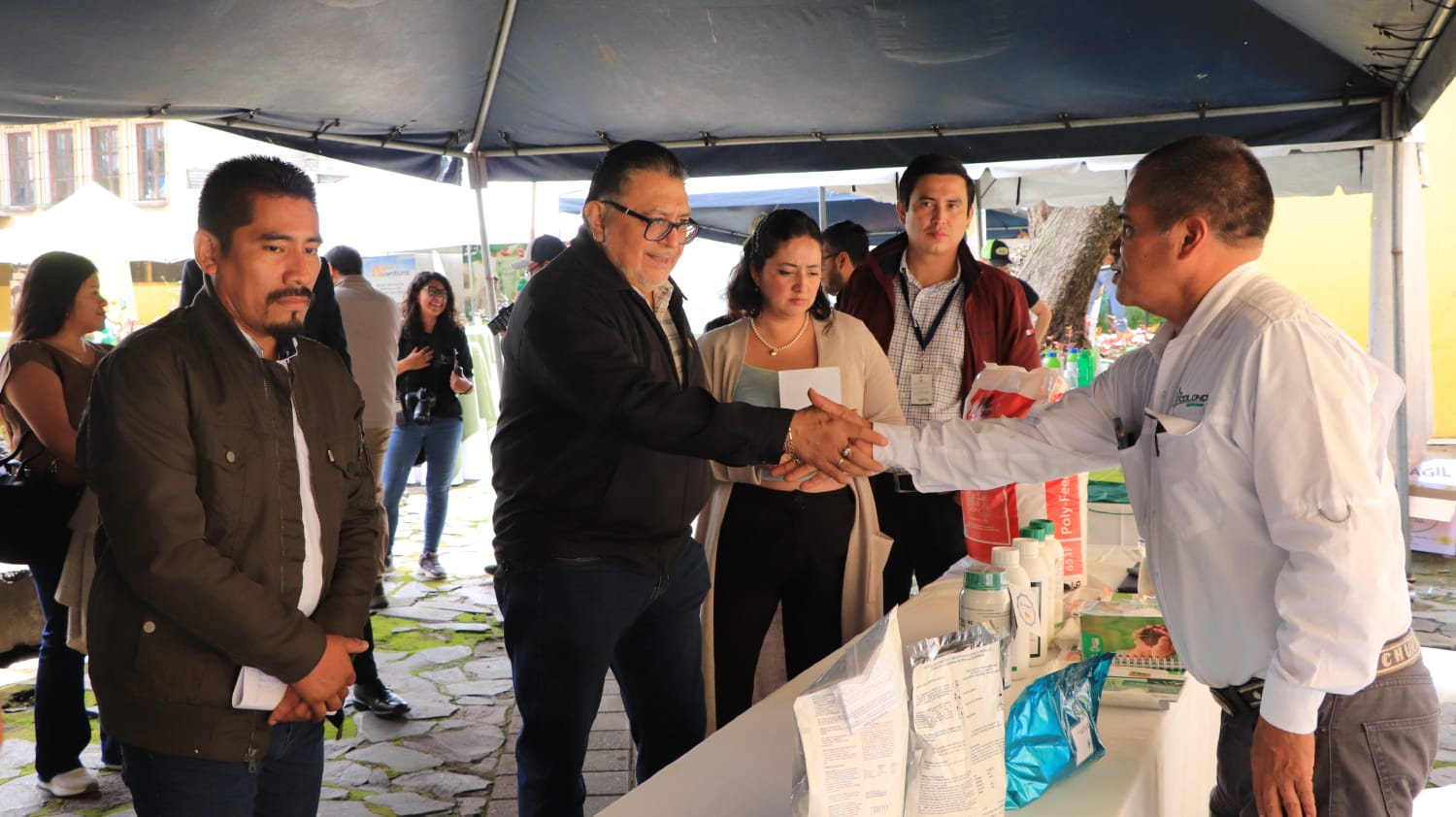 Al cierre de la reunión el ministro Estrada, participó en la inauguración de una feria agrícola que se realiza en Ciudad Vieja, saludando a las y los participantes que exponen sus productos en el evento.