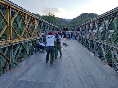 Trabajadores de la Zona Vial 14, de Baja Verapaz, de la Dirección General de Caminos (DGC) del Ministerio de Comunicaciones, Infraestructura y Vivienda (CIV), realizaron el cambio de la superficie de rodadura de madera a láminas de metal del puente Concua, ubicado en la ruta nacional RN-05, tramo Montúfar – Granados, a inmediaciones del kilómetro 163.