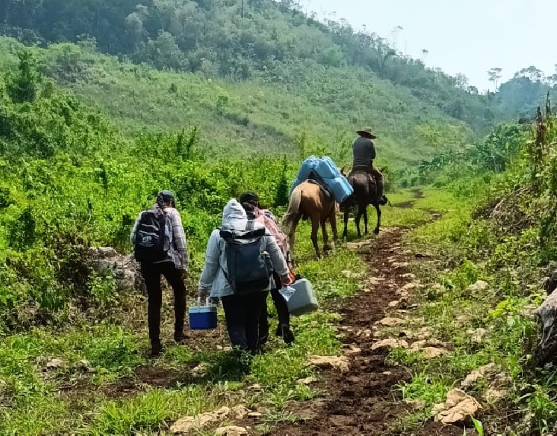 Caminan largas distancias para llegar a comunidad de Petén y continuar la lucha contra la desnutrición