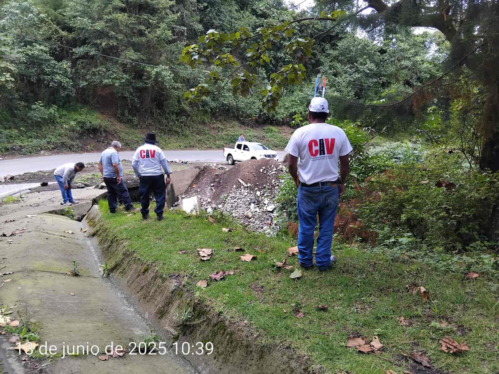El Ministerio de Comunicaciones, Infraestructura y Vivienda (CIV), por medio de la Zona Vial No. 12, atiende una emergencia vial en el km 78.6 de la Ruta Nacional 10 (RN-10), en el tramo San José Calderas – La Soledad, jurisdicción de Chimaltenango.