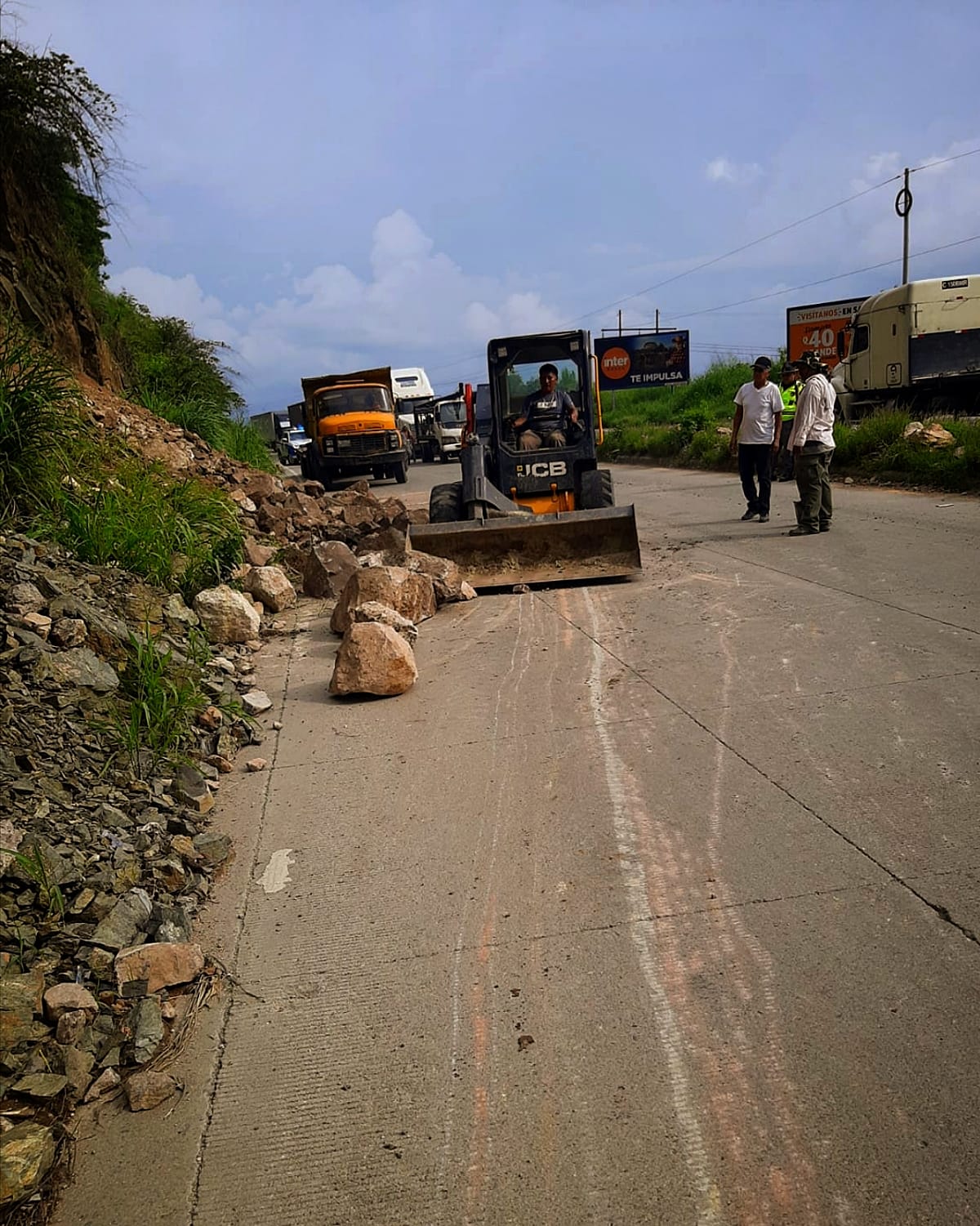 Caminos limpia derrumbe en la Ruta al Atlántico y mantiene el paso libre