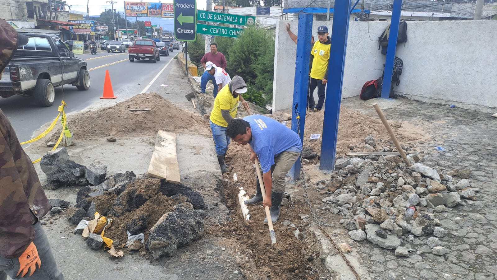 El daño fue originado por la obstrucción de una cuneta, lo que generó la erosión del subsuelo y comprometió la estabilidad de la carretera. En respuesta inmediata, el personal técnico de Caminos, en coordinación con la Municipalidad de Chimaltenango, realizó trabajos de excavación, construcción muro de contención de piedra ligada con concreto, relleno y construcción de cuneta, para asegurar la rehabilitación estructural del sector afectado.