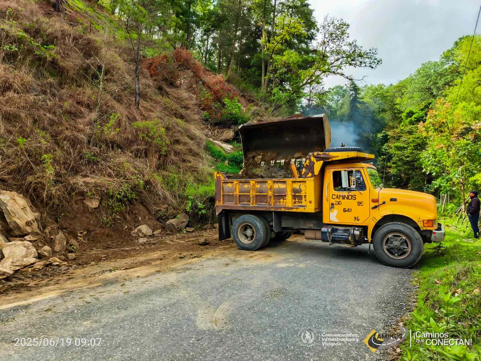 La Dirección General de Caminos, a través de la Zona Vial No. 14, atendió de manera inmediata un derrumbe ocurrido en el kilómetro 160.1 de la ruta RD-BV-12, que conecta los municipios de Salamá y Llano Grande, en el departamento de Baja Verapaz.