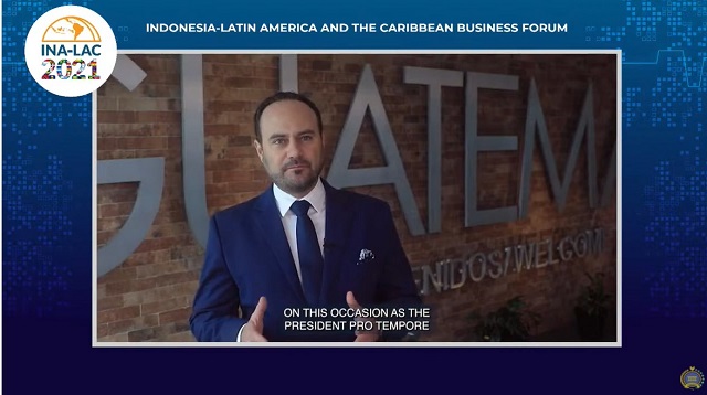 Yakarta, Indonesia, 14 de octubre de 2021. El ministro de Relaciones Exteriores de Guatemala, embajador Pedro Brolo Vila, participó de forma virtual en la ceremonia de apertura del III Foro Empresarial Indonesia-América Latina y el Caribe (INA-LAC) 2021, celebrada en formato híbrido este jueves bajo el lema “La asociación Indonesia, América Latina y el Caribe: recuperarnos juntos, recuperarnos más fuertes”.