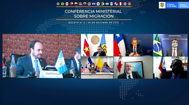 Bogotá, Colombia, 20 de octubre de 2021. El ministro de Relaciones Exteriores, Pedro Brolo Vila, participó este miércoles en la Conferencia Ministerial sobre Migración, desarrollada en Bogotá, Colombia, junto a cancilleres de América y el secretario de Estado de Estados Unidos, Antony Blinken, a quien reiteró su solicitud para que los guatemaltecos en EE. UU. obtengan el Estatus de Protección Temporal (TPS, por sus siglas en inglés).