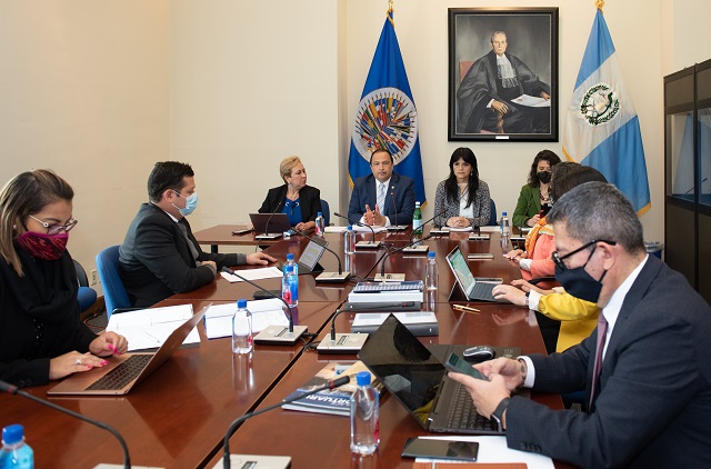 Con respecto, a la reunión con la Secretaría de Asuntos Jurídicos, se conocieron los avances en la implementación del proyecto “Fomento de la institucionalidad democrática y lucha contra la corrupción en Guatemala”. Asimismo, la OEA en su papel de apoyo técnico a Guatemala, ha brindado acompañamiento en la implementación de las recomendaciones del Informe de la Misión Especial de la OEA, así como a aquellas contenidas en los informes de país emitidas por el Comité de Expertos del Mecanismo de Seguimiento de la Implementación de la Convención Interamericana contra la Corrupción (MESICIC).