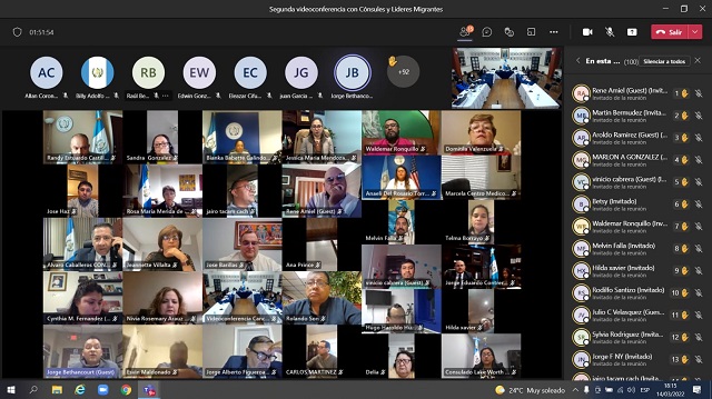 Guatemala, 15 de marzo de 2022. El ministro de Relaciones Exteriores, embajador Mario Búcaro, se reunió virtualmente el 14 de marzo con más de 60 líderes de la comunidad de connacionales que radican en Estados Unidos, con el objetivo de escuchar las necesidades y propuestas de mejora en el servicio que se presta a los guatemaltecos en ese país.