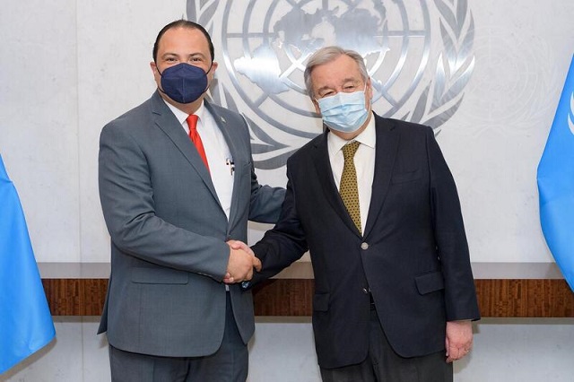 Canciller Mario Búcaro y secretario general de la ONU abordan asuntos de seguridad alimentaria y desarrollo