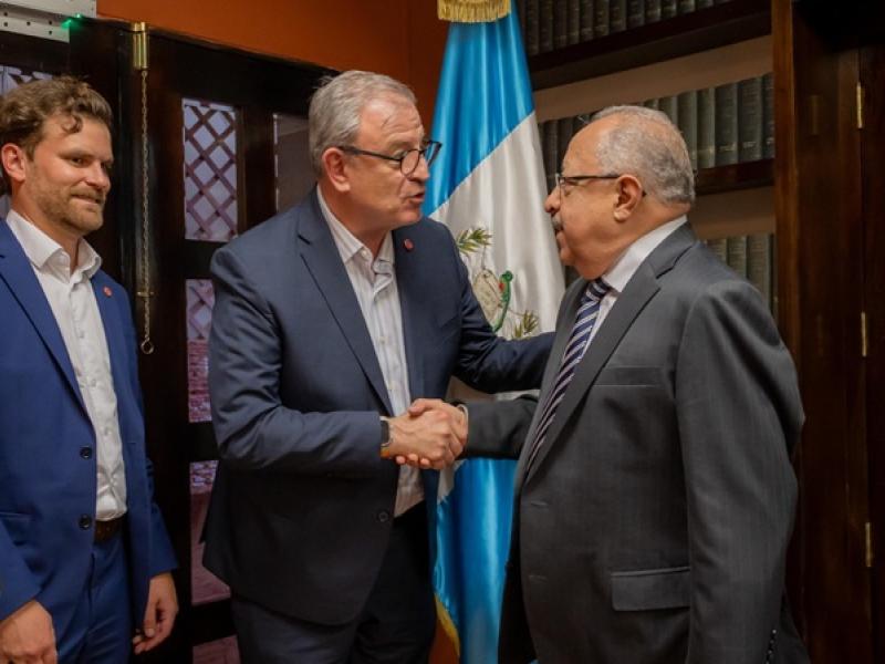 Guatemala, 30 de septiembre de 2025. El Canciller Carlos Ramiro Martínez Alvarado recibió a los representantes de Air Canada Luis Noriega y Charles Daoust, con el fin de darles la bienvenida oficial a nuestro país, en preparación al vuelo inaugural que conectará Montreal con Ciudad de Guatemala del 2 de octubre hasta el 29 de abril próximo.