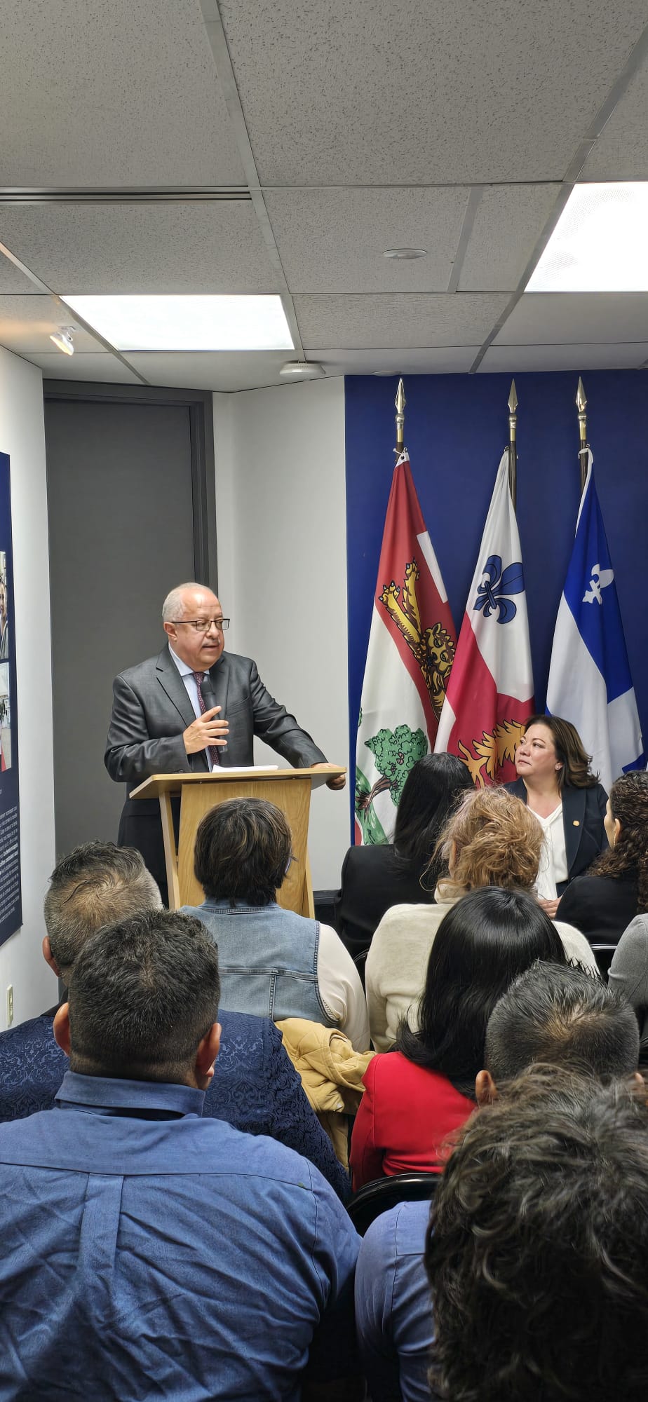 Montreal, Canadá, 10 de abril de 2026. En el marco de su visita oficial a Canadá, el ministro de Relaciones Exteriores, Carlos Ramiro Martínez Alvarado, sostuvo un encuentro con la comunidad guatemalteca residente en Montreal y en la provincia de Quebec, donde reiteró el compromiso del Gobierno de la República con una atención consular cercana, humana y eficaz.