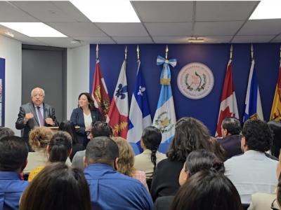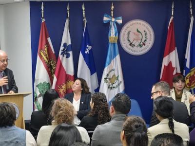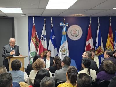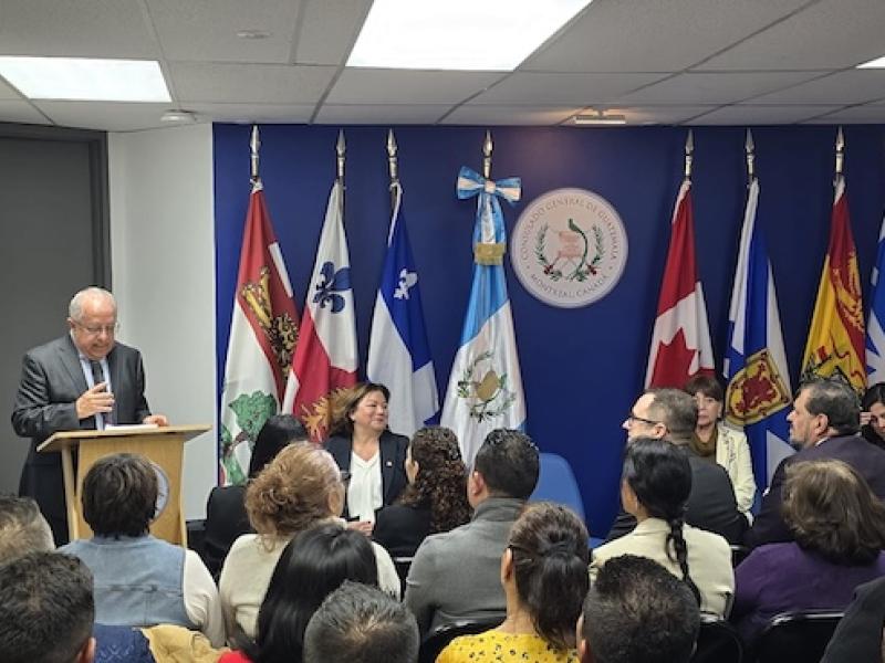 Canciller Martínez Alvarado se reúne con comunidad guatemalteca en Montreal, Canadá