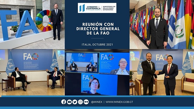 Además conversaron sobre el diseño e implementación de propuestas para la movilización de recursos relacionados con el cambio climático y su impacto en los países más vulnerables a eventos ambientales; se destacó la confianza del Gobierno de Guatemala a través del Ministerio de Medio Ambiente y Recursos Naturales para que la FAO ejecute el proyecto del Fondo Verde del Clima RELIVE, que contempla una inversión de US$36,6 millones en donación, de los cuales US$7 millones provienen de la República de Corea. La FAO manifestó el compromiso de iniciar lo antes posible su implementación