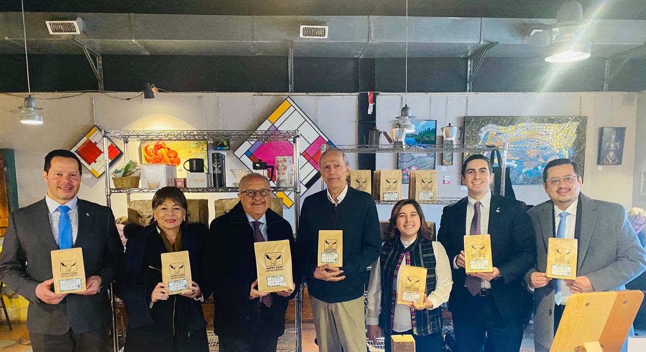 Ottawa, Canadá, 10 de abril de 2026. En el marco de su visita oficial a Canadá, el canciller Carlos Ramiro Martínez sostuvo un encuentro con el fundador del Happy Goat Coffee Co., cadena con 20 tiendas en Canadá, quien expresó su congratulación por ser un importador clave de café de Guatemala.