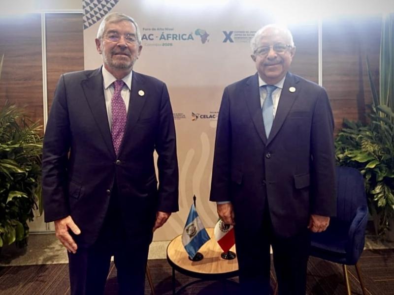 Bogotá, Colombia, 21 de marzo de 2026. En el marco de la X Cumbre de Jefas y Jefes de Estado de la Comunidad de Estados Latinoamericanos y Caribeños (CELAC), el Canciller de Guatemala, Carlos Ramiro Martínez Alvarado, sostuvo una reunión bilateral con su homólogo de México, Juan Ramón de la Fuente.