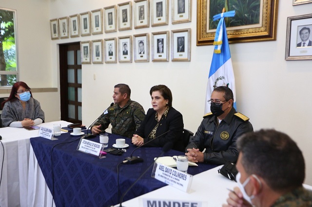 La viceministra de Relaciones Exteriores, embajadora Ava Atzum, presidió el encuentro con el viceministro de Política de Defensa y Planificación, general de Brigada Carlos Norman; y el viceministro de la Marina, vicealmirante Axel Colindres, para presentarles los resultados obtenidos por el establecimiento de plataformas digitales para modernizar los procesos y gestiones relacionadas a la licencia y cédula diplomática, así como las solicitudes que se reciben para el uso del salón diplomático del Ministerio de Relaciones Exteriores, ubicado en el Aeropuerto Internacional La Aurora.