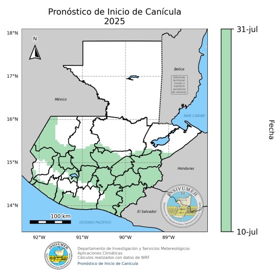 Según el pronóstico, la canícula se presentará de forma diferenciada en el territorio nacional. En la región del Pacífico y los Valles de Oriente se espera su inicio durante la primera quincena de julio; mientras que en el Altiplano Central y Occidente comenzará en la segunda quincena. Por otro lado, en áreas como el Caribe, Norte, Franja Transversal del Norte y Bocacosta no se prevé una canícula marcada. En los Valles de Oriente, podría extenderse hasta el 10 de agosto.