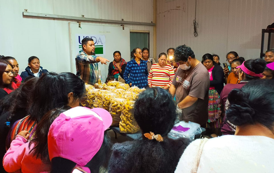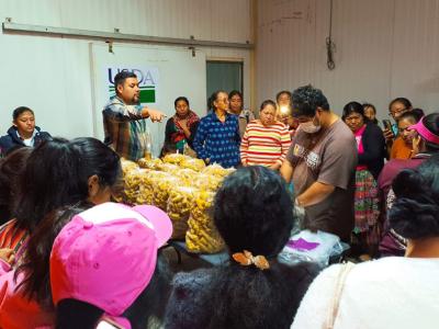 Esta actividad busca desarrollar la capacidad instalada en las agricultoras, para que aprendan a manejar el cultivo de hongos ostra, obtener un proceso productivo nutricional y rentable para implementar 50 módulos. También se les dotó de 50 libras de semillas en total.